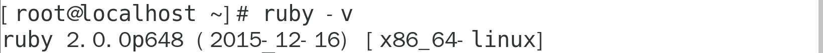 1 sudo yum -y install ruby安装的版本通常是特定发行版发布时可用的最新 Ruby 版本。