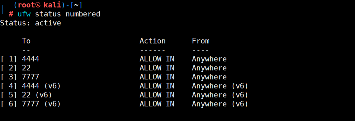 设置Kali(攻击机)监听端口 7777 即前文打开的 端口号
